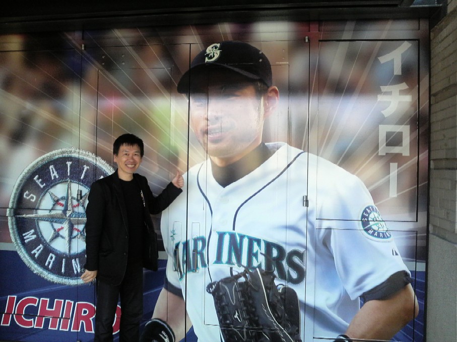 シアトルではミーハーながら、イチローのデカイ写真の前でパチリ。。。